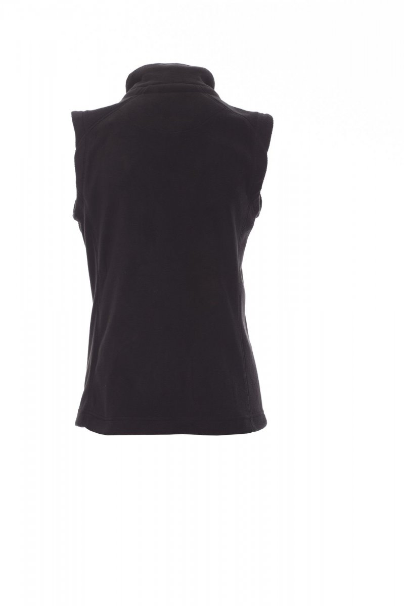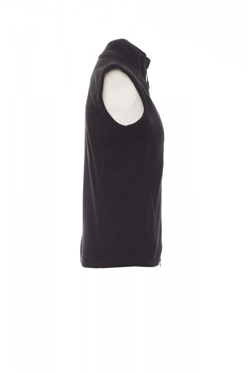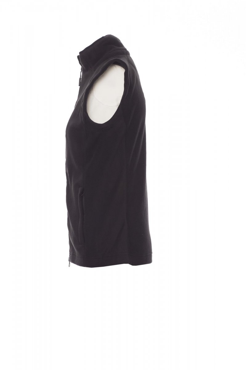 Damesfleecevest, kunststof rits met dubbele runner, raglan pasvorm, twee zakken met verdekte rits voor en een borstzak met rits.