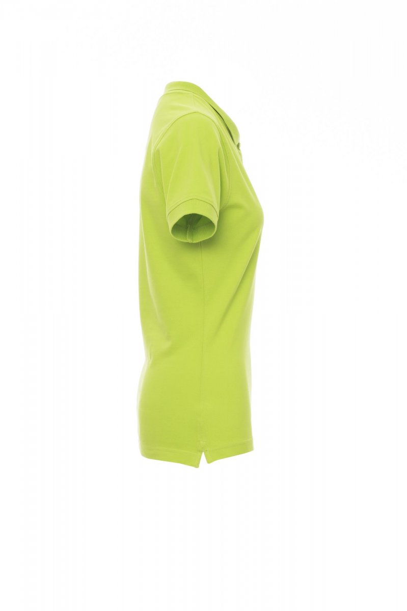 Nauwsluitend damespoloshirt met korte mouwen met 4 bijpassende knopen met parelmoereffect, ribkraag en geribde mouwrand, zijsplitten, verborgen stiksels bij de kraag met contrasterende band, elastische naden, versterkingsband aan de zijkant, band aan de binnenkant van de nek
