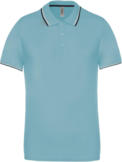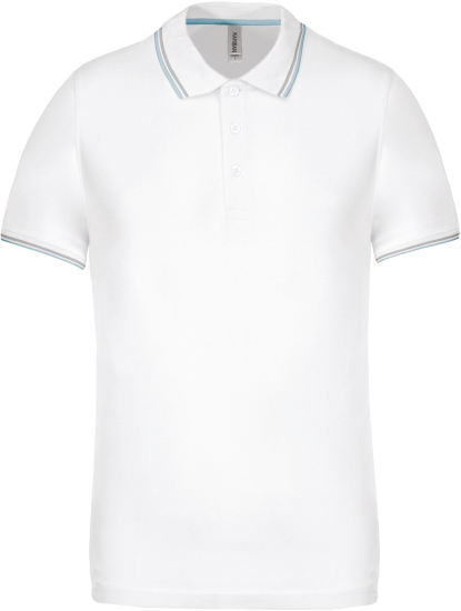 100% katoen piqué. Knooplijst met 3 knopen. Nektape en zijsplitjes in contrastkleur. Afwerking in rib met gecontrasteerde rand aan de kraag en mouwuiteinden. Afgewerkt met dubbele stiksels onderaan. Gecertificeerd STANDARD 100 by OEKO-TEX®N° CQ1007/7, IFTH.